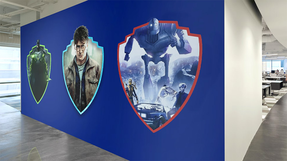 Foi criada também uma versão dimensional do logotipo, a ser usada exclusivamente para casos especiais. A marca dimensional tem o aspecto limpo e simplificado do novo logotipo, mas com uma profundidade que sugere a experiência do conteúdo. O logotipo pode ser personalizado para os momentos de abertura e fechamento de filmes e programas individuais. Também pode funcionar como uma janela para imagens e sequências, usando a borda do escudo como moldura.