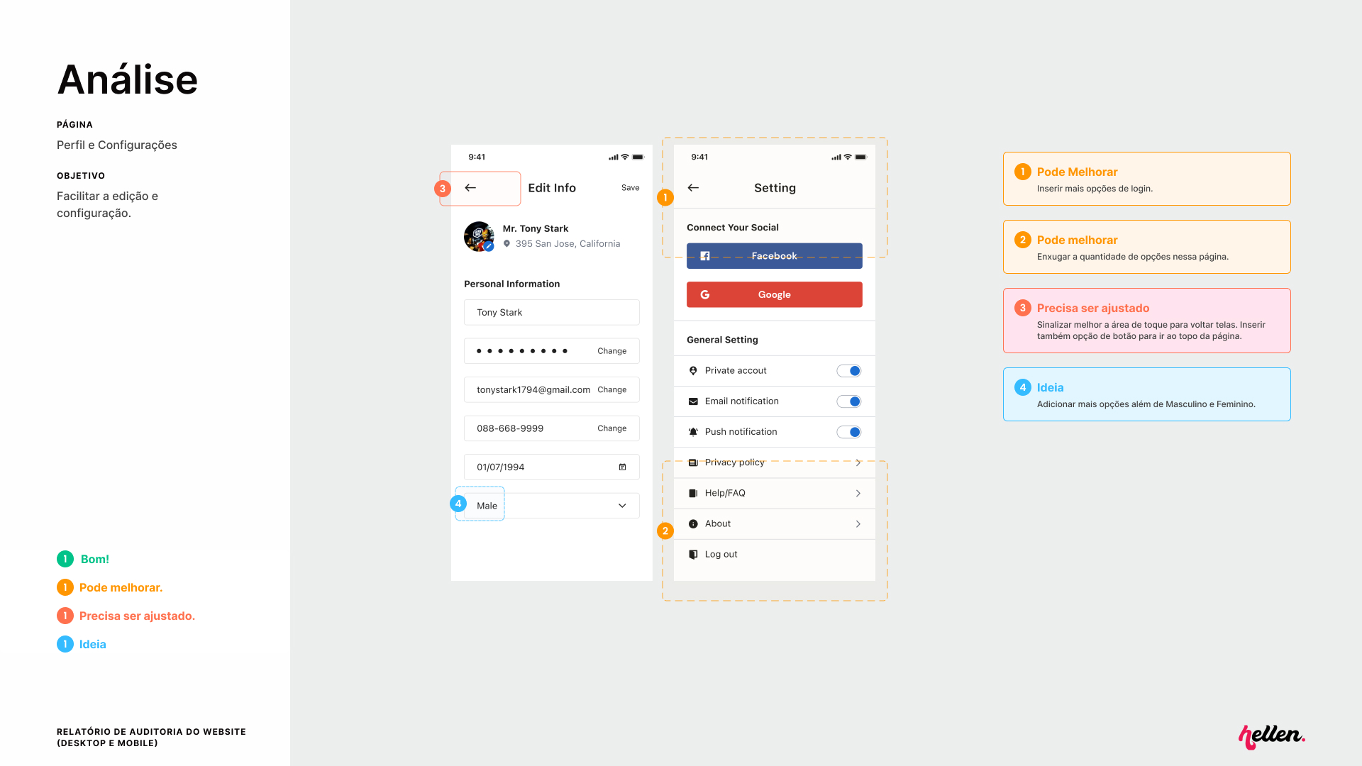 Será analisada a qualidade das imagens, disposição dos elementos, consistência, entre outros fatores visuais importantes.